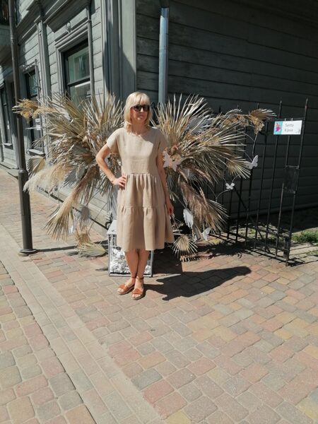 Garā lina kleita. ,,Pieneņu pūka,, 44/46.izm.