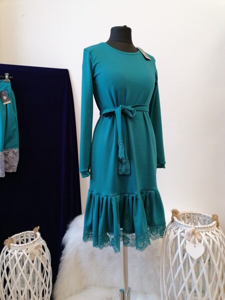 Piparmētru tonī kleita ar mežģīni.38/40.izm.